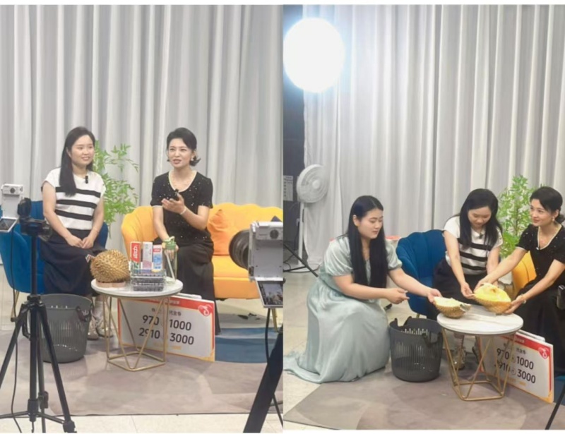 營銷官魏杰從商之都的發(fā)展歷程、企業(yè)理念娓娓道來,逐步深入到品牌核心價(jià)值,同時(shí)也重點(diǎn)推薦了商之都推出的大額消費(fèi)券,優(yōu)惠力度誠意滿滿。在談到紅府超市時(shí),魏杰也如數(shù)家珍,將每款產(chǎn)品的特色亮點(diǎn)生動(dòng)呈現(xiàn)。最令人眼前一亮的當(dāng)屬現(xiàn)場(chǎng)剝榴蓮環(huán)節(jié),魏杰手法嫻熟,將金黃軟糯的果肉展示給屏幕前的觀眾,還不忘分享挑選優(yōu)質(zhì)榴蓮的小竅門,瞬間拉近了與消費(fèi)者的距離。