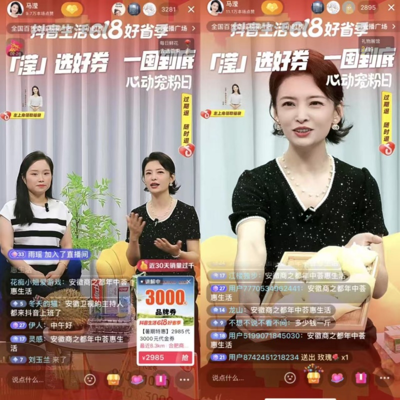 作為安徽家喻戶曉的明星主持人,馬瀅憑借親和力和專業(yè)度,為直播間注入強(qiáng)勁活力。鏡頭前,她妙語連珠的主持風(fēng)格、游刃有余的控場(chǎng)能力,瞬間點(diǎn)燃直播間的熱烈氛圍。在評(píng)論區(qū),觀眾們熱情似火,留言彈幕如潮水般翻涌不息。開播僅1小時(shí)便登陸全國綜合商場(chǎng)榜NO.1!