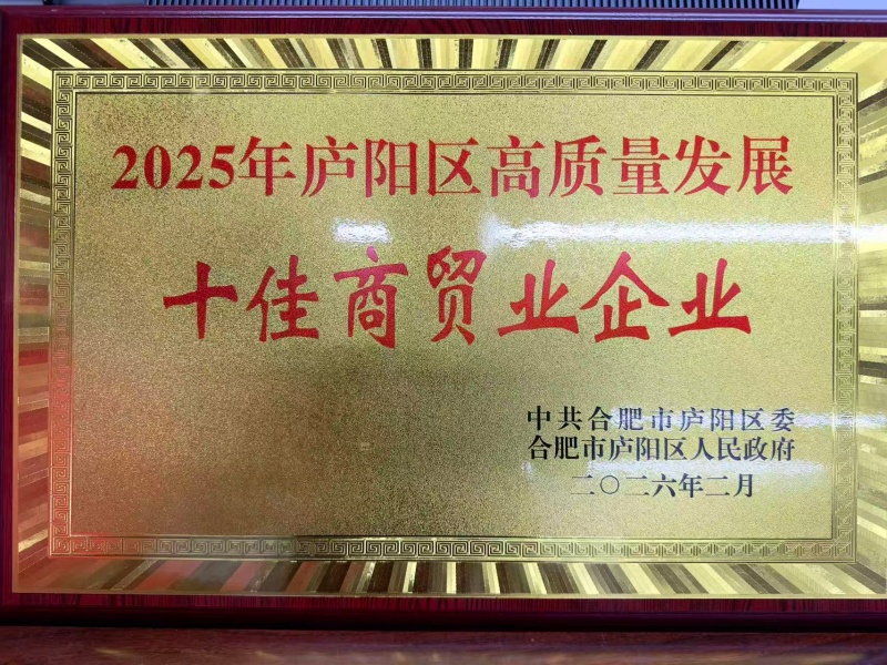 公司榮獲2025年度廬陽(yáng)區(qū)高質(zhì)量發(fā)展“十佳商貿(mào)業(yè)企業(yè)”稱號(hào)