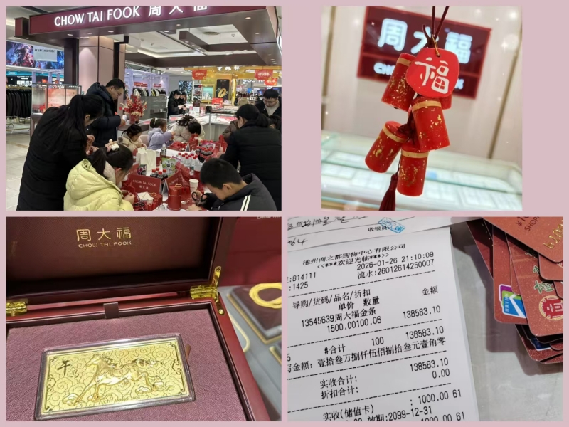 池州商之都周大福專柜以年味主題活動實現(xiàn)引流破圈,“心想事成鞭炮皂”DIY活動人氣爆棚,現(xiàn)場參與人次超預期,同步主推的馬年吉祥金飾,有效激發(fā)顧客購買熱情?;顒悠陂g,一對顧客現(xiàn)場成交5萬余元八寶羅盤,員工緊抓顧客需求、持續(xù)跟進深度服務,次日成功促成100克馬年金條銷售,最終達成總計近20萬元大額訂單,真正實現(xiàn)了“以活動帶客流、以服務鎖成交”的良性循環(huán),為開門紅再添重磅戰(zhàn)果。