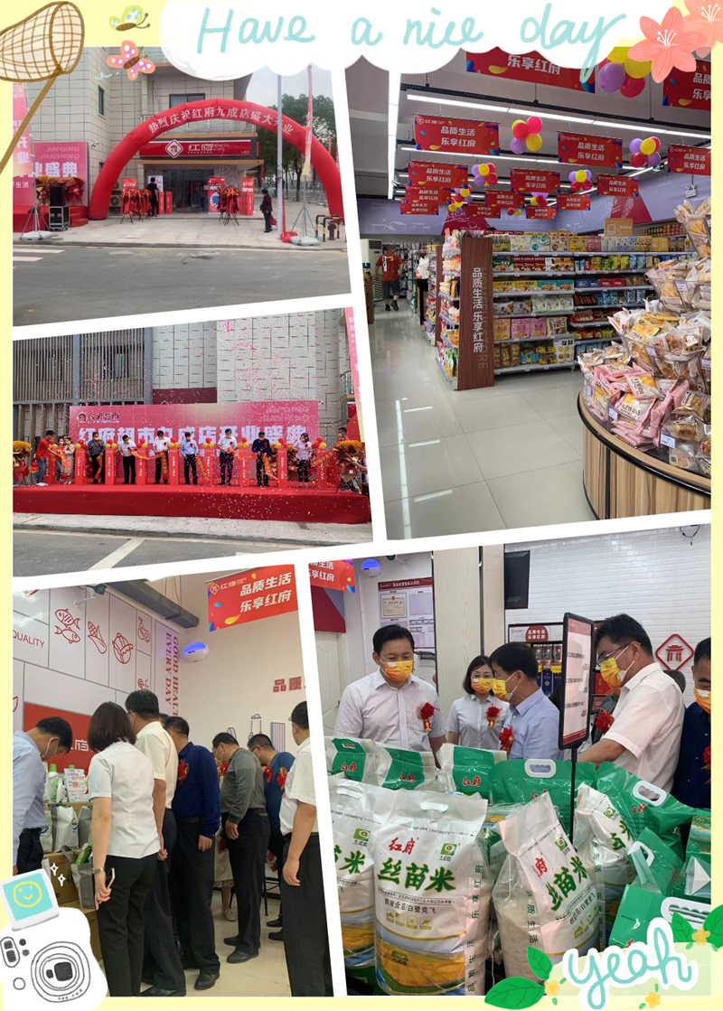 2022年5月18日上午8:58,紅府超市九成店在九成畈農(nóng)場集團各級領(lǐng)導(dǎo)的見證下隆重開業(yè)。