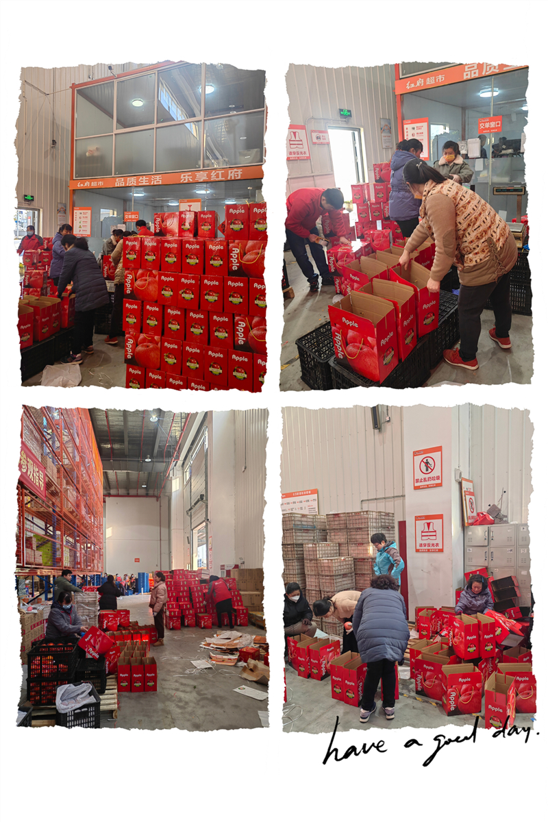 “便利店水果禮盒打包,便利店采購(gòu)、運(yùn)營(yíng)部門(mén)員工和放假門(mén)店員工通力合作,保障供應(yīng)”