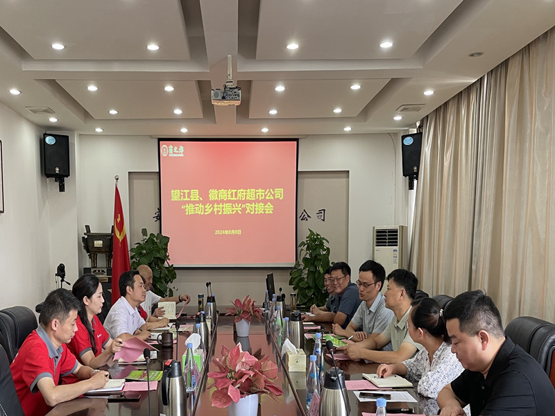8月8日上午,紅府超市與望江縣人民政府在公司召開“推動鄉(xiāng)村振興”對接會。望江縣人民政府副縣長石德犇一行來訪,商之都副總經(jīng)理、紅府超市董事長任等平等相關(guān)人員參與洽談。