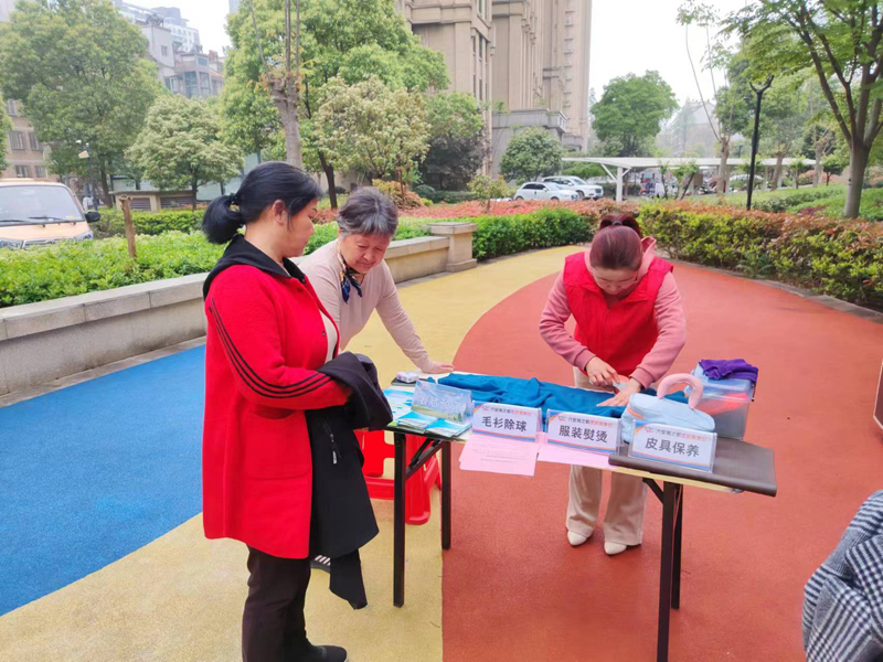 活動現(xiàn)場社區(qū)居民絡(luò)繹不絕,“V服務(wù)”志愿隊隊員針對各項服務(wù)熱情地接待社區(qū)居民,并將服裝和皮具保養(yǎng)知識現(xiàn)場教授給前來咨詢的居民,受到社區(qū)居民的好評。