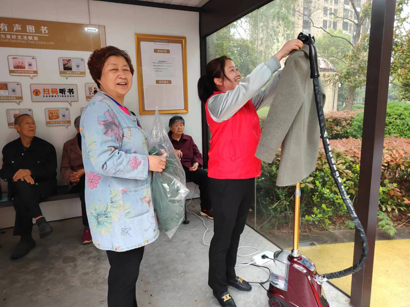 4月12日上午,六安商廈黨支部聯(lián)合九墩塘社區(qū)黨總支來到紫御府小區(qū)鄰里驛站,黨建品牌“V服務(wù)”提供上門服務(wù),為社區(qū)居民提供毛衫除球、服裝熨燙、皮具保養(yǎng)等免費服務(wù)。