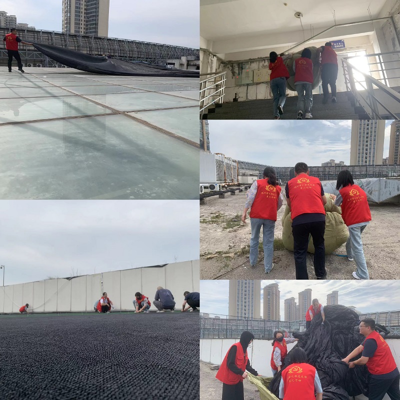 5月9日下午,池州購物中心黨支部開展“我為群眾辦實(shí)事”活動(dòng),為購物中心頂樓屋面鋪設(shè)防曬網(wǎng),為顧客和員工提供一個(gè)舒適涼爽的購物、工作環(huán)境,購物中心黨員、入黨積極分子參加活動(dòng)。