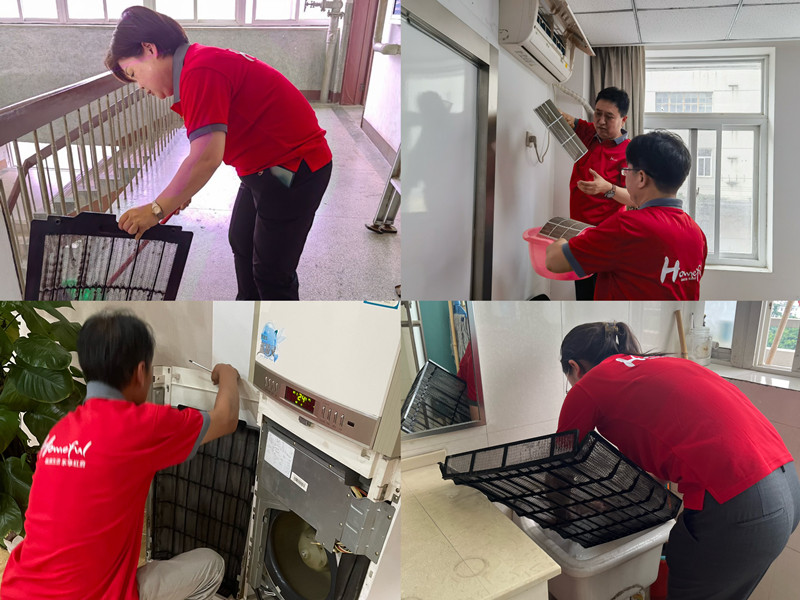 支部全體黨員分成4個小組,每個小組由一個支委委員帶隊,統(tǒng)一安排,相互配合,給空調(diào)斷電、拆卸外殼、抽出濾網(wǎng)、清洗濾網(wǎng)、將洗凈的濾網(wǎng)安裝回空調(diào),將辦公樓八個樓層里每一間辦公室的空調(diào)進(jìn)行清洗。黨員同志們不怕臟不怕累,互幫互助,暖心的服務(wù)受到了所有同事的一致好評和稱贊。
