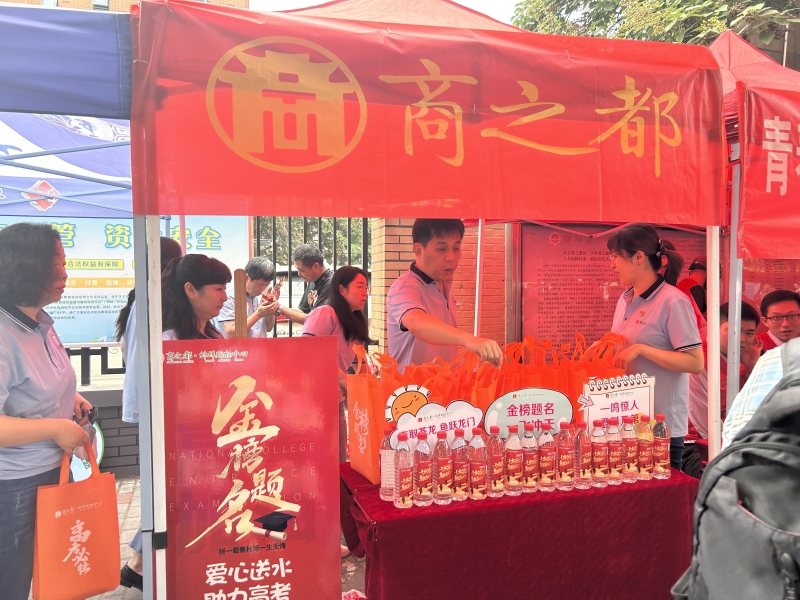 6月7日早上,蚌埠購物中心黨支部“五心服務(wù)”小分隊在蚌埠一中考點前搭建起愛心助考站,開展“金榜題名 成就夢想”高考送考志愿服務(wù)活動。為考生和家長們送上印有“金榜題名”的礦泉水和“福袋”,誠摯祝愿莘莘學(xué)子高考順利,金榜題名。