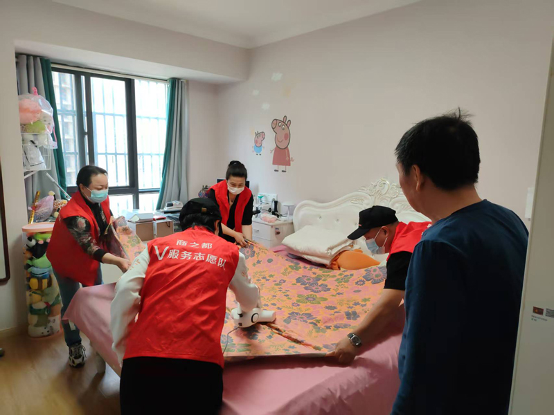 活動(dòng)前,志愿者們根據(jù)睦鄰計(jì)劃服務(wù)登記表的預(yù)約需求,針對(duì)老年群體特點(diǎn)定制服務(wù)清單。服務(wù)過程中,商廈“V服務(wù)”志愿隊(duì)員統(tǒng)一著裝,佩戴手套、一次性鞋套,攜帶專業(yè)服務(wù)工具,分組前往住戶家中。針對(duì)服務(wù)對(duì)象的具體需求,志愿者們提供了床品除螨、物品收納等貼心服務(wù)。大家分工協(xié)作、高效行動(dòng),為住戶營(yíng)造了干凈、整潔、舒適的生活環(huán)境,贏得了居民的一致好評(píng)。