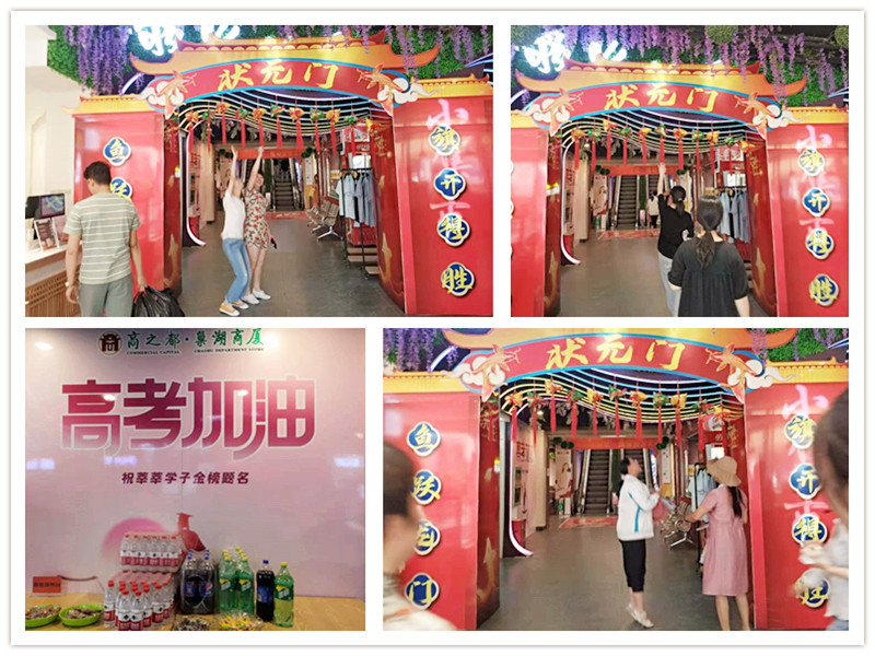 本次巢湖商廈繼續(xù)在商廈內(nèi)建立了高/中考服務(wù)站,為高考學(xué)生和家長提供飲用水、防暑藥等消暑用具。現(xiàn)場搭建的狀元門吸引了不少考生們前來“沾喜氣”。