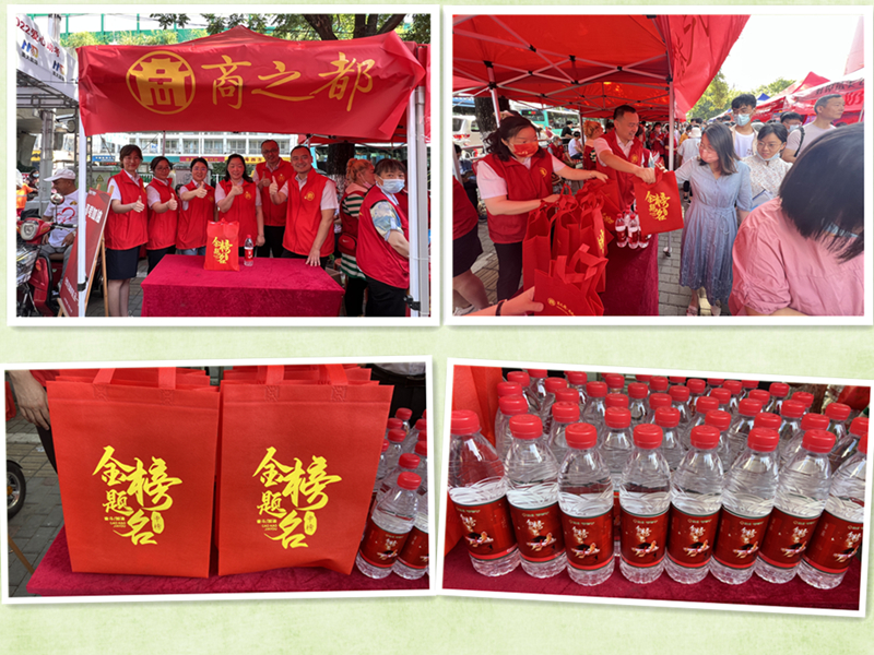 6月7日、8日高考期間,蚌埠購(gòu)物中心黨支部“五心服務(wù)”小分隊(duì)迎著朝陽(yáng),在蚌埠一中考點(diǎn)前搭建起愛心助考送水站,免費(fèi)為考生和家長(zhǎng)們提供礦泉水等防暑降溫物品,在炎熱的天氣里為學(xué)子和家長(zhǎng)們送上一絲清涼和誠(chéng)摯的祝福。購(gòu)物中心用心定制的印有“金榜題名”和“高考必勝”的環(huán)保便利袋尤其受到廣大學(xué)子和家長(zhǎng)們的喜愛。