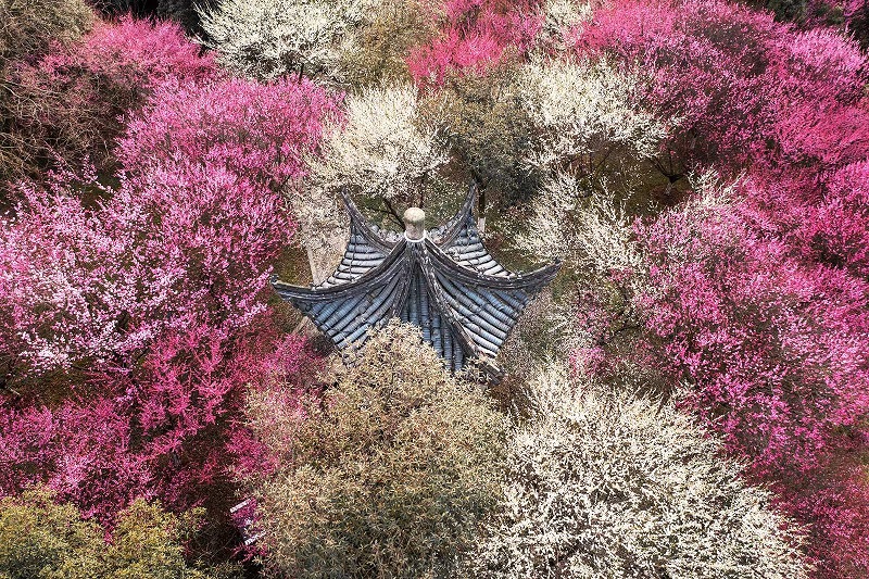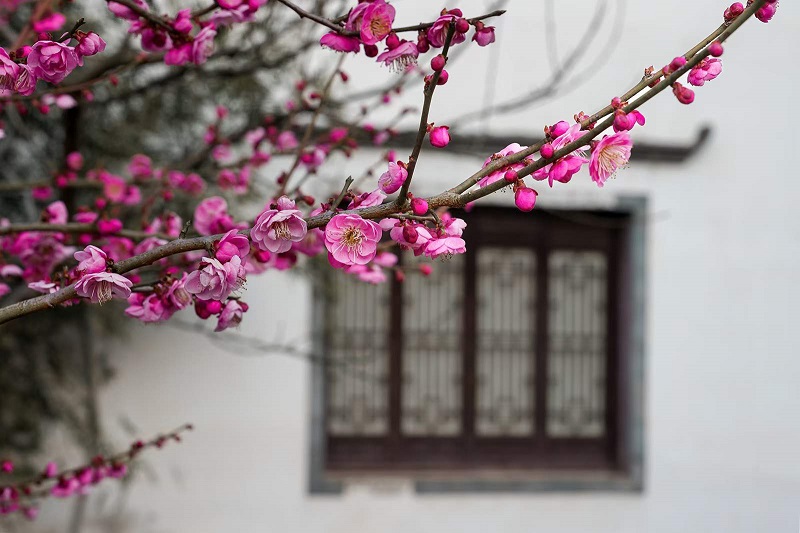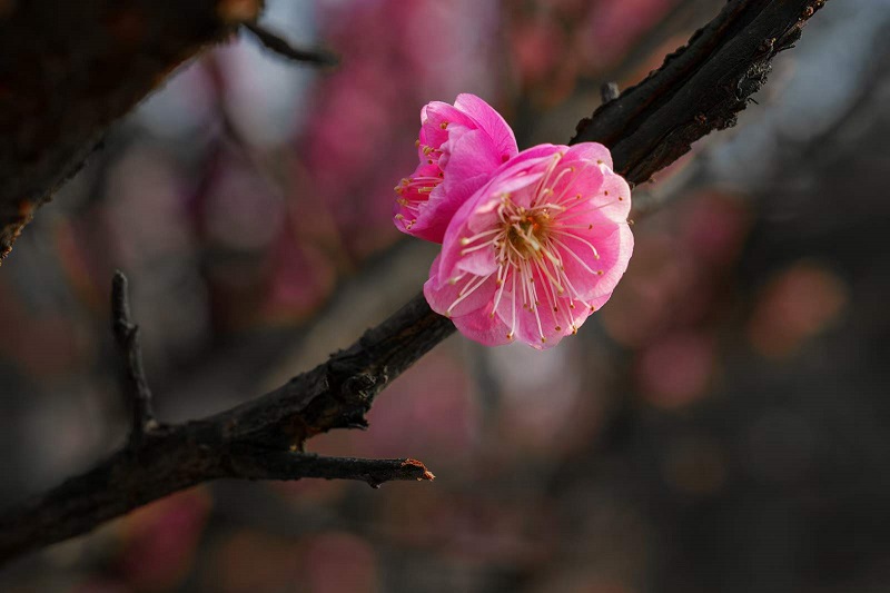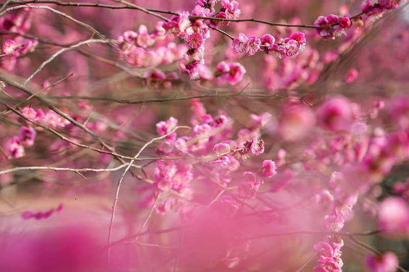 進入公園,滿眼的梅花,這些梅花,傲然怒放,絢麗多彩,紅若火焰,粉如云霞,白色的冰肌玉骨……春風徐來,一朵朵五彩繽紛的梅花在風中起舞翩遷,漫步其間,如在畫中游。