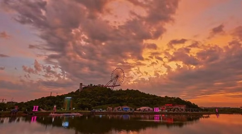 “大風(fēng)車吱呀吱呦呦地轉(zhuǎn),這里的風(fēng)景真好看,天好看,地好看......”,看見摩天輪那一刻,熟悉的旋律不覺映入腦海,這是誰家的孩子玩丟了大風(fēng)車,還是哪吒遺落了風(fēng)火輪,與天邊詭譎的云朵相映成輝。