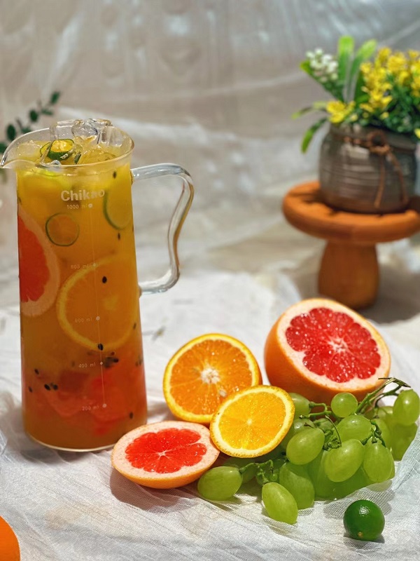 準(zhǔn)備:萃好的茉莉綠茶,各類水果切好備用。