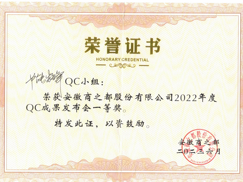 中心廣場榮獲2022年度QC成果發(fā)布一等獎