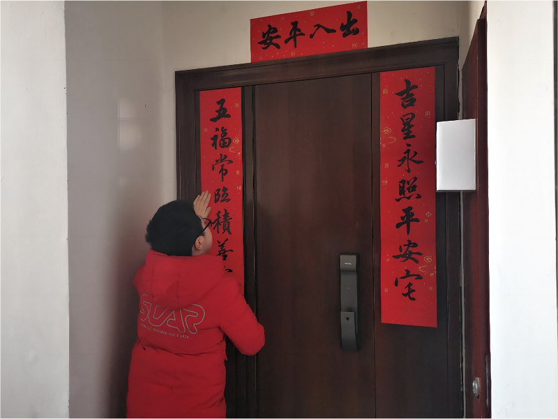 紅色的衣裳,紅色的福字,紅色的對聯(lián),預(yù)祝新的一年紅紅火火、福氣盈門。