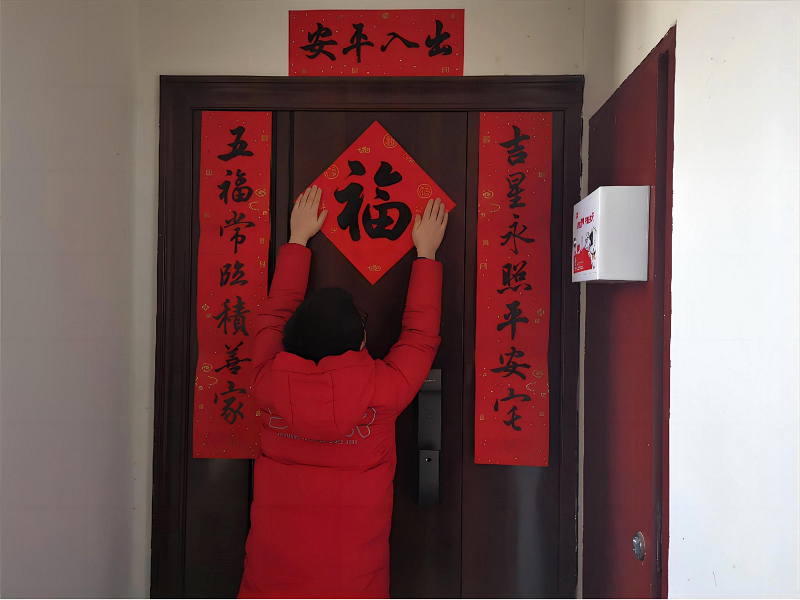 年夜飯前貼上春聯(lián),在辭舊迎新中喜迎新年。