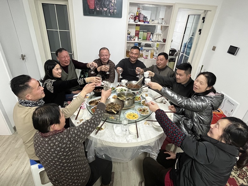 舉杯同慶,團圓的年夜飯寓意著家庭的幸福美滿。