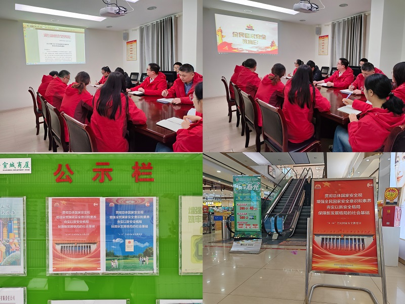 4月14日上午,宣城商廈組織員工集中學(xué)習(xí)司法部、全國普法辦《關(guān)于開展2023年全民國家安全教育日普法宣傳活動(dòng)的通知》、省國資委相關(guān)通知以及國家安全教育相關(guān)知識(shí),收看專題宣傳視頻,強(qiáng)調(diào)了國家安全工作的重要性,要求全體員工樹立國家安全意識(shí)。商廈通過微信工作群發(fā)動(dòng)全體員工積極參與專項(xiàng)答題活動(dòng),并在微信朋友圈轉(zhuǎn)發(fā)活動(dòng)宣傳圖片,在公示欄、商場內(nèi)擺放活動(dòng)宣傳畫等,積極營造“全民國家安全教育日普法宣傳”活動(dòng)氛圍。