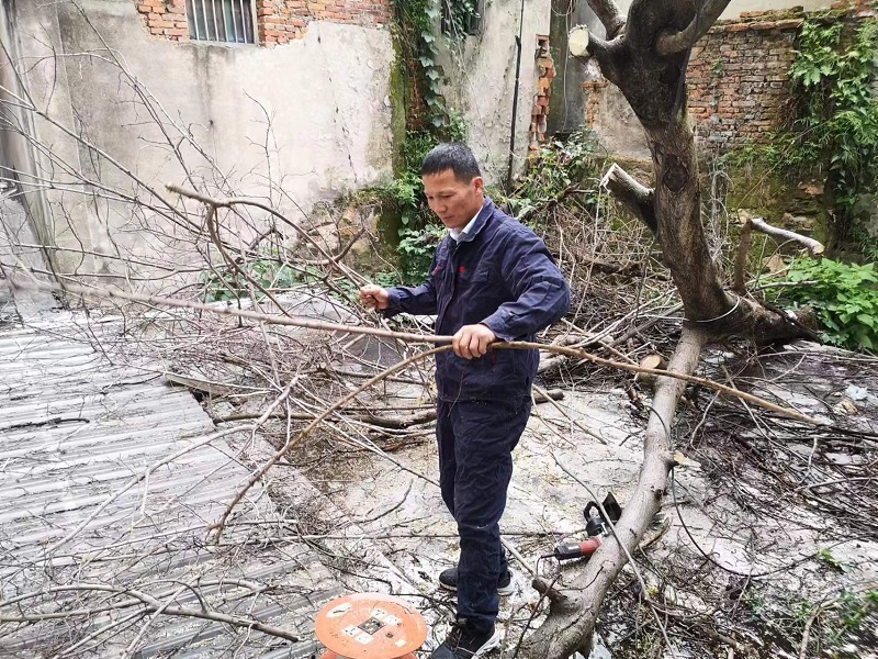 后勤保障部門員工迅速出擊,5月11日上午對(duì)倚靠在墻體上的老梧桐樹進(jìn)行砍伐拆解。大家合理分工,一組負(fù)責(zé)砍伐斷根、一組負(fù)責(zé)枯枝收集,經(jīng)過(guò)約3個(gè)小時(shí)辛苦作業(yè),消除了安全隱患,保障了商廈的安全經(jīng)營(yíng)秩序。