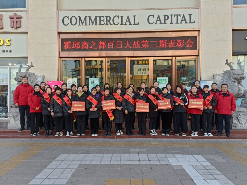 12月6日上午,霍邱商廈在門前廣場舉行2023年“百日大戰(zhàn)”第三期表彰會,百貨、紅府、國生全體當(dāng)班員工及受表彰人員參會。