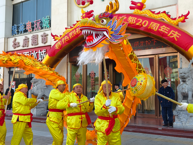 儀式在鑼鼓喧天的舞龍中拉開(kāi)帷幕,扭秧歌隊(duì)的出場(chǎng)將現(xiàn)場(chǎng)氛圍推向高潮。