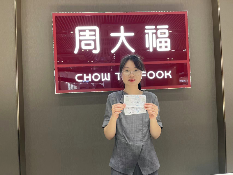精準(zhǔn)服務(wù)贏贊譽。在一樓賣場周大福專柜,00后員工程蓓蓓以其細(xì)心的觀察力和周到的服務(wù),成為國慶期間的“銷售之星”,一單成交了近10萬元的兩只古法手鐲。她不僅耐心傾聽顧客需求,更主動出擊,精準(zhǔn)推薦,為了確保顧客能找到最合適的尺寸,她跑遍了全城的近八個門店進(jìn)行比對,用真誠和專業(yè)的服務(wù)打動顧客并贏得了顧客贊賞成單。