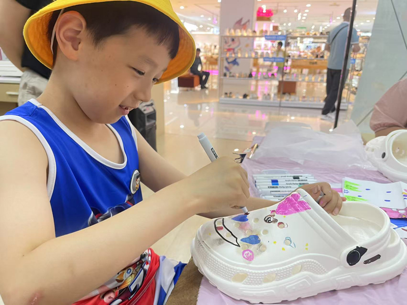 6月15日下午,六安商廈聯(lián)合紅黃藍(lán)畫(huà)室組織開(kāi)展“爸氣十足 步步相伴”主題活動(dòng),在這充滿溫情與愛(ài)的日子里,孩子們相聚在一樓嘟嘟閱讀圈,以父親節(jié)為契機(jī),通過(guò)顏料DIY拖鞋這一獨(dú)特的活動(dòng)形式,讓孩子們與爸爸?jǐn)y手,用畫(huà)筆在拖鞋上描繪創(chuàng)意:有的勾勒出超人爸爸守護(hù)自己的場(chǎng)景,有的繪上一棵大樹(shù)。創(chuàng)作中,笑聲與交流聲交織,親子間情感在色彩碰撞里升溫,家長(zhǎng)們表示,通過(guò)互動(dòng),更懂孩子內(nèi)心;孩子們則笑著說(shuō),和爸爸一起畫(huà)畫(huà)、過(guò)節(jié),超幸福!
