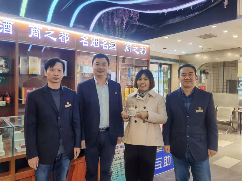 近日,巢湖商廈一樓舉辦了一場(chǎng)溫馨的退休員工歡送會(huì),商廈負(fù)責(zé)人張亮、工會(huì)副主席江榮華來(lái)到營(yíng)業(yè)現(xiàn)場(chǎng),祝賀煙酒柜員工孫萍光榮退休。