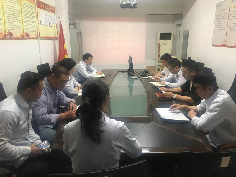 5月18日下午,滁州商廈在六樓會議室召開2021年5月份安全生產工作會議,商廈后勤保障部相關人員、部門負責人及以上人員參加會議。