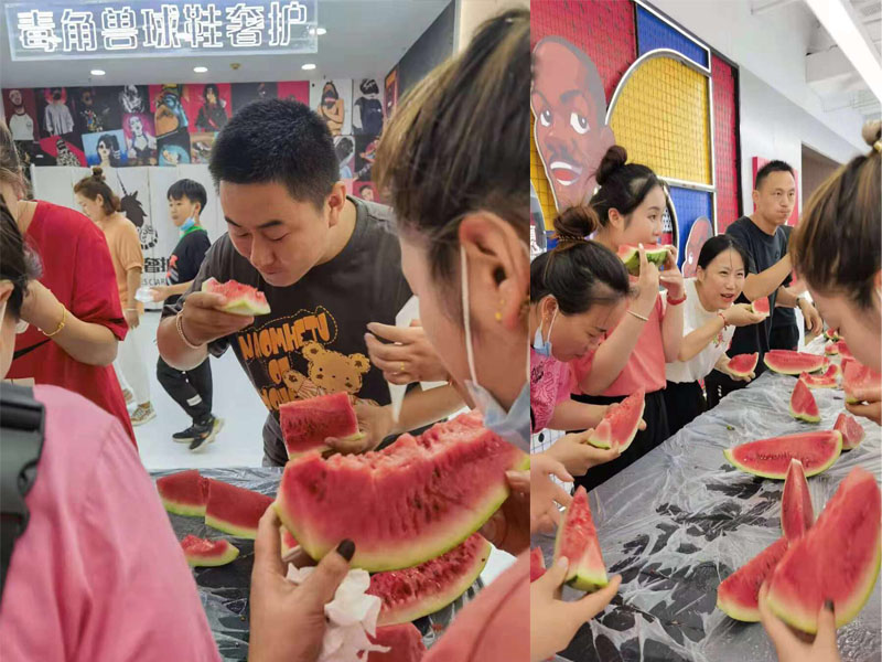 滁州商廈運動城于7月25日下午在一樓開展“清涼一夏”趣味吃西瓜比賽,共有15名顧客參加比賽。