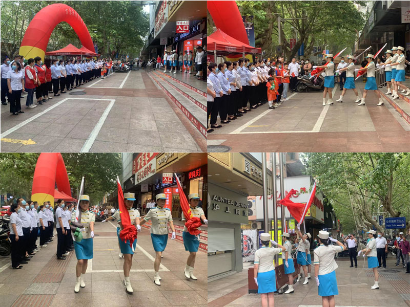 升國旗,慶國慶。為慶祝中華人民共和國成立73周年,滁州商廈聯(lián)合萬客來、老鳳祥、安踏體育等商鋪舉行國慶升旗儀式。上午8點30分,升旗儀式開始,護旗手邁著整齊的步伐,護送國旗走向升旗臺。隨著義勇軍進行曲的響起,五星紅旗徐徐升起,員工向國旗行注目禮。