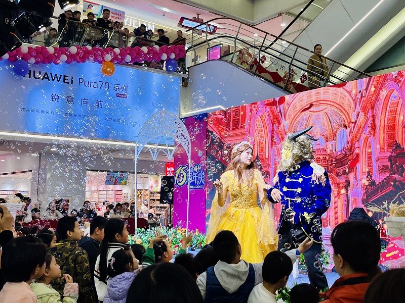 為了讓顧客們度過一個難忘的周末,11月23日下午和晚間,商場特別為小朋友們準備了夢幻的兒童劇表演。下午時分,現(xiàn)場制作的3米長生日蛋糕更是吸引了眾多市民駐足品嘗,共享甜蜜與喜悅。而11月24日的新生代街舞挑戰(zhàn)賽更是將現(xiàn)場氣氛推向了高潮,每一位場內(nèi)的顧客都能感受到青春的活力與激情。