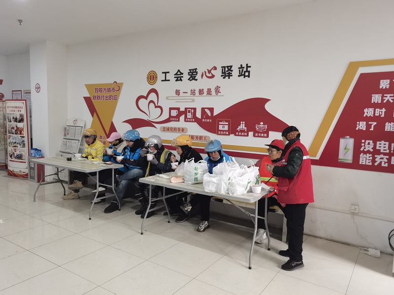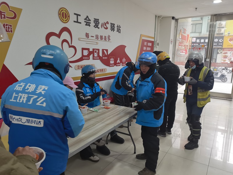 1月7日,正值傳統(tǒng)臘八節(jié),池州購物中心聯(lián)合池州市委社會工作部、市場監(jiān)督管理局和老鄉(xiāng)雞商之都星光大道店,在池州商之都工會驛站內(nèi)舉辦了一場充滿溫情的送臘八粥活動,給外賣騎手小哥、環(huán)衛(wèi)工人等戶外勞動者送上臘八粥,為池城寒冷冬日添上了一抹暖色。