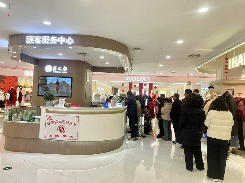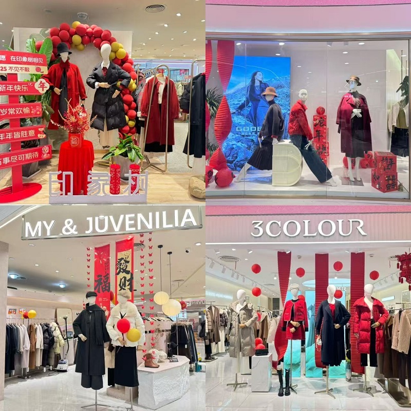只見二樓谷邦女裝櫥窗里的模特展示著當下流行的新年穿搭,麥笈女裝店鋪內精美的春聯和寓意吉祥的福字錯落有致地張貼著,特別是印象樹女裝DP點旁陳列的春節(jié)許愿牌吸引了不少顧客停下腳步,用手機記錄2025年對家人的這份心愿,希望家人新年里年年有勝意。