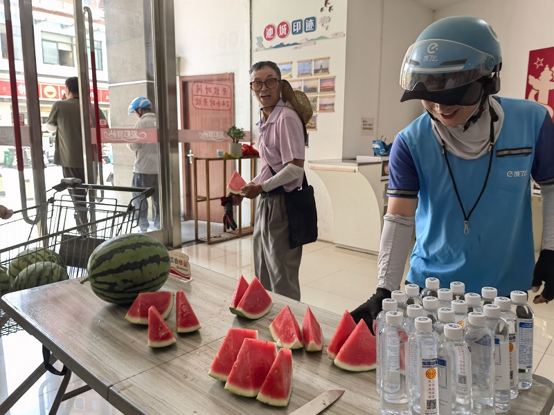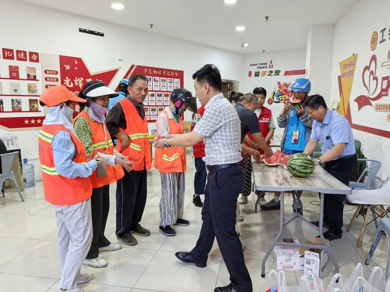 活動(dòng)期間,池州購(gòu)物中心為外賣小哥、環(huán)衛(wèi)工人等戶外勞動(dòng)者精心準(zhǔn)備了西瓜、礦泉水、冰袖以及清涼大禮包等防暑降溫物品。池州市總工會(huì)也大力支持,送來3000瓶礦泉水,表達(dá)了對(duì)池州商之都工會(huì)驛站持續(xù)用心服務(wù)戶外勞動(dòng)者工作的充分認(rèn)可。這些物資不僅緩解了戶外勞動(dòng)者在高溫工作中的口渴與炎熱,更讓他們感受到了來自社會(huì)各界的尊重和關(guān)愛。